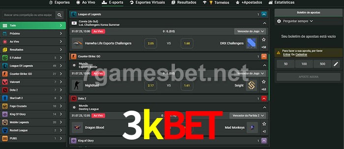 O 3kbet oferece uma grande seleção de opções de apostas em e-sports com probabilidades competitivas